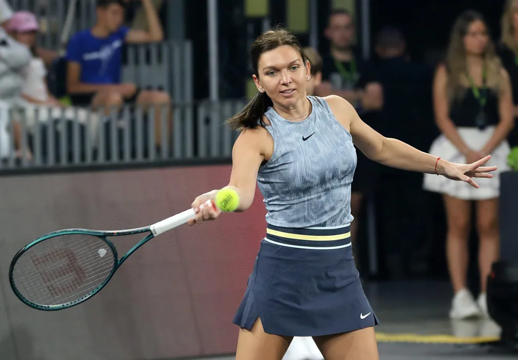 Simona Halep in timpul meciului demonstrativ de tenis organizat in cadrul Sports Festival, sambata 15 iunie 2024, in Cluj-Napoca. FLORIN BALTATOIU / MEDIAFAX FOTO