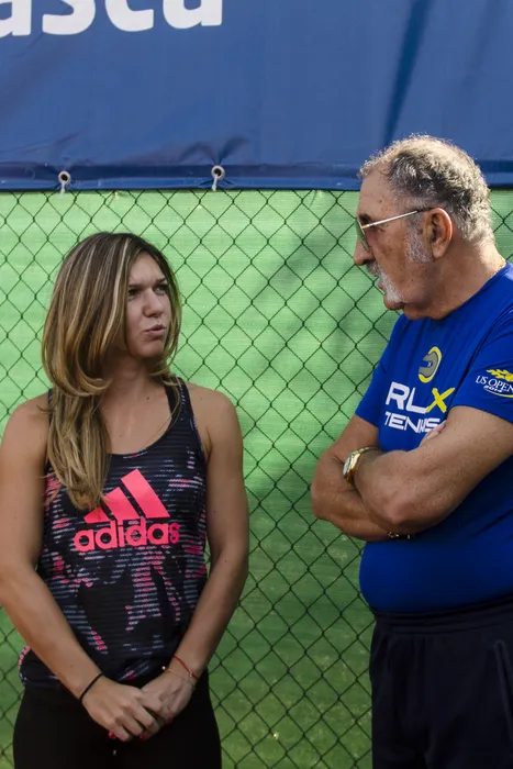 Simona Halep si Ion Tiriac discuta in timpul evenimentului de inaugurare a terenurilor de tenis pe zgura, din cadrul Complexului Sportiv Ion Tiriac, organizat de Fundatia Olimpica Romana, in Bucuresti, miercuri, 16 septembrie 2015. PASCAL PAMFIL / MEDIAFAX FOTO