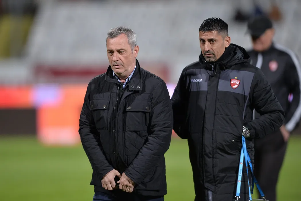 Mircea Rednic, antrenorul echipei Dinamo Bucuresti, si Ionel Danciulescu urmaresc meciul de fotbal contra echipei FC Botosani din etapa a VI-a a play-out-ului Ligii 1, disputat pe stadionul Stefan cel Mare din Bucuresti, luni, 22 aprilie 2019. ALEXANDRU DOBRE / MEDIAFAX FOTO