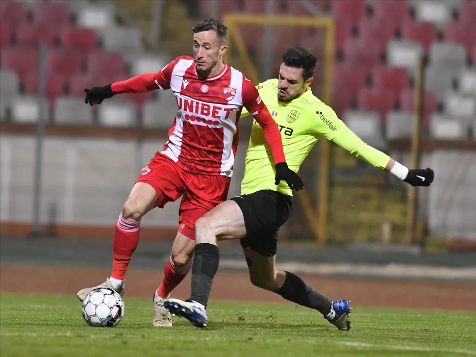 Juan del Carmen Camara Mesa si Andrei Andonie Burca in meciul de fotbal dintre Dinamo Bucuresti si CFR Cluj, contand pentru Liga 1 Casa Pariurilor, desfasurat fara spectatori pe stadionul Dinamo din Bucuresti, joi 17 decembrie 2020. © FOTO:Razvan Pasarica/SPORT PICTURES