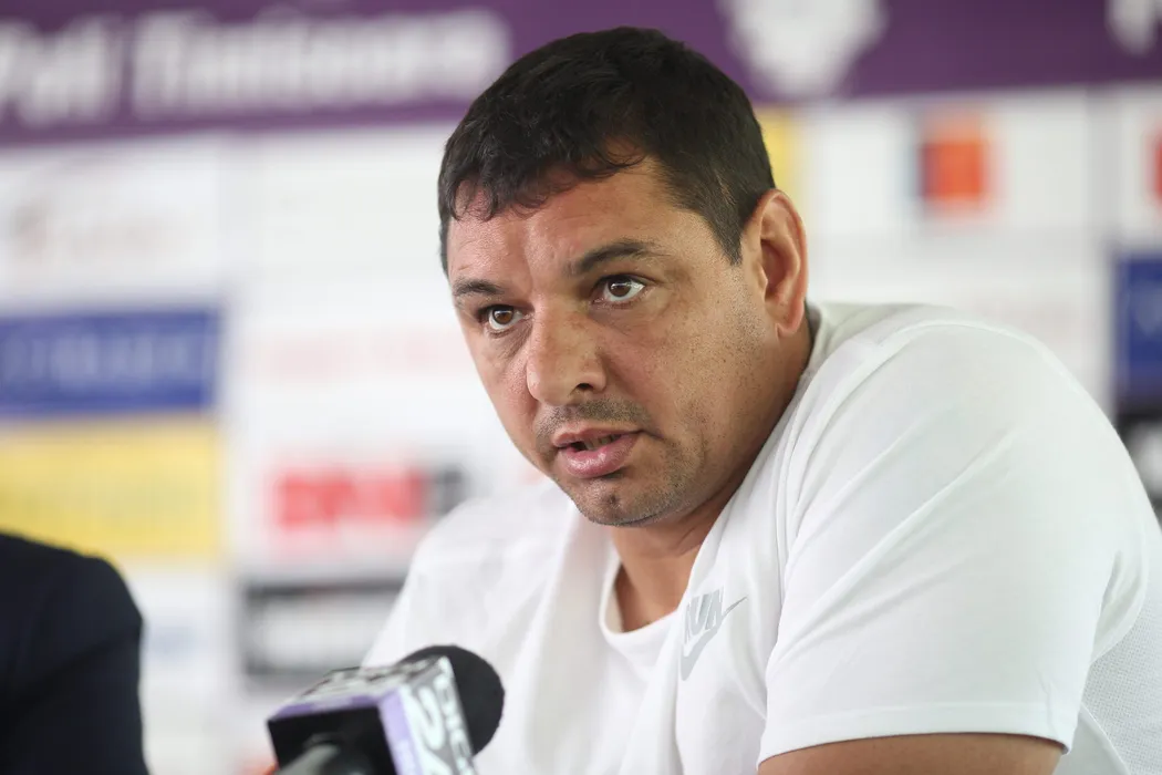 Ionel Ganea si Radu Birlica(nu este in imagine), participa la conferinta de presa pentru prezentarea noului manager sportiv, Ovidiu Petre(nu este in imagine), la Stadionul Dan Paltinisanu din Timisoara, marti 10 iulie 2018. SEBASTIAN TATARU / MEDIAFAXFOTO