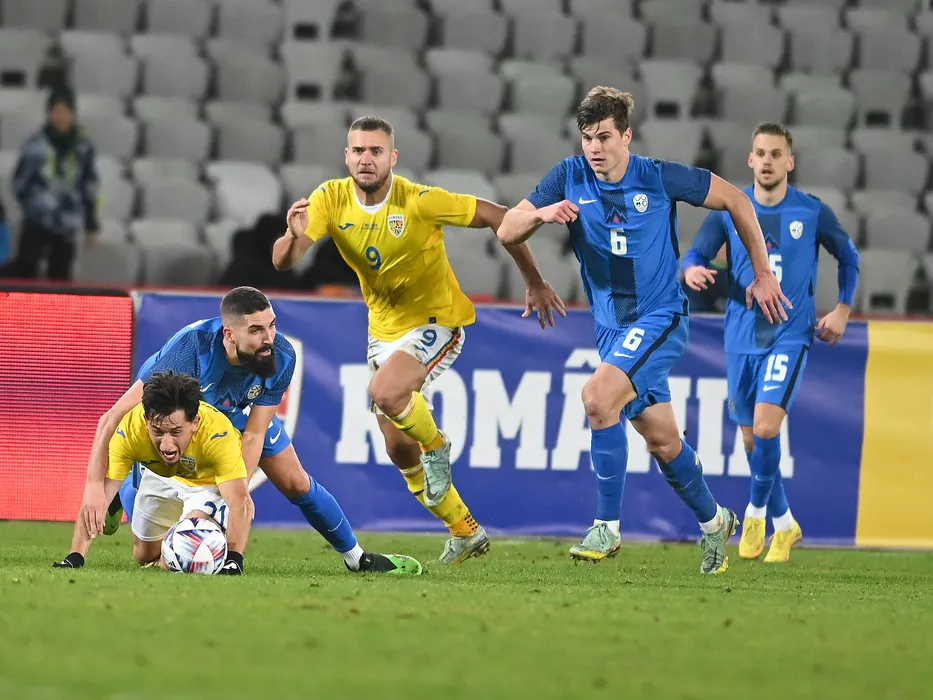 Olimpiu Vasile Moruțan, Miha Mevlja, George Pușcaș si Jaka Bijol in meciul amical de fotbal dintre Romania si Slovenia, desfasurat pe Cluj Arena din Cluj Napoca, joi 17 noiembrie 2022. © FOTO:Razvan Pasarica/SPORT PICTURES