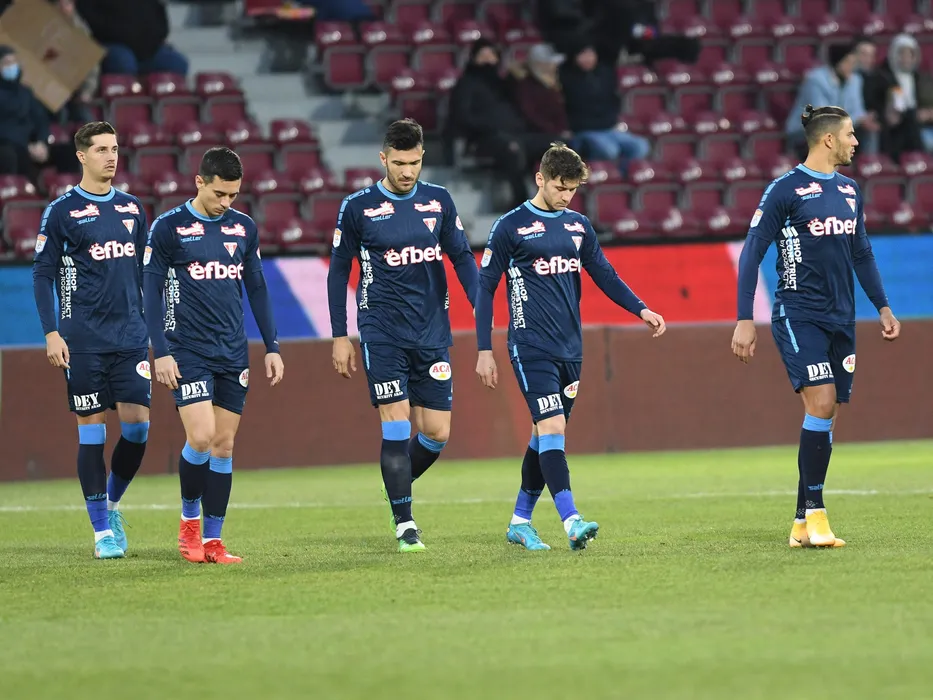 Fotbalistii aradeni in meciul de fotbal dintre CFR Cluj si UTA Arad, contand pentru Liga 1 Casa Pariurilor, desfasurat pe Stadionul Dr. Constantin Radulescu din Cluj Napoca, marti 08 februarie 2022. © FOTO:Flaviu Buboi/SPORT PICTURES