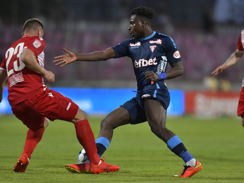 Philip Porwei Otele in meciul de fotbal dintre Dinamo Bucuresti si UTA Arad, contand pentru Play-out-ul Ligii 1 Casa Pariurilor, desfasurat pe Stadionul Dinamo din Bucuresti, vineri 13 mai 2022. © FOTO:Razvan Pasarica/SPORT PICTURES