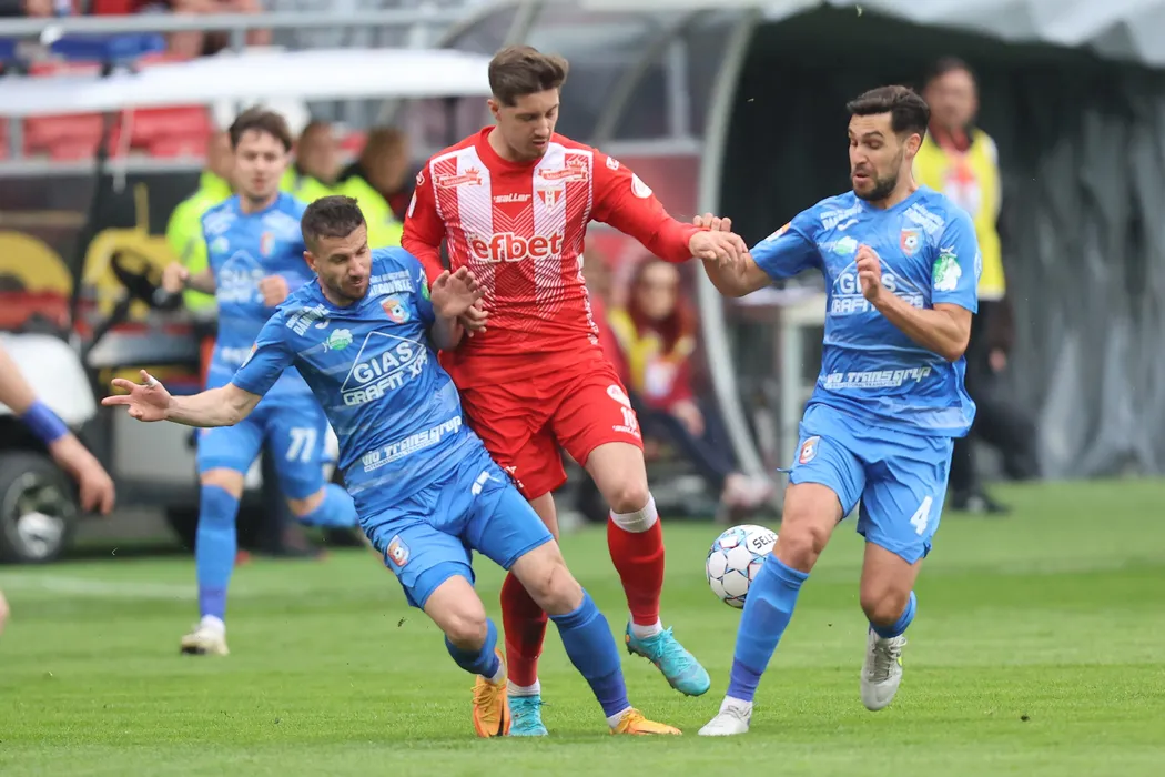 Meciul de fotbal dintre UTA Arad si Chindia Targoviste, contand pentru Play-out-ul Ligii 1 Casa Pariurilor, desfasurat pe Stadionul Francisc Neuman din Arad, sambata 23 aprilie 2022. © FOTO:Ciprian Petcut/SPORT PICTURES