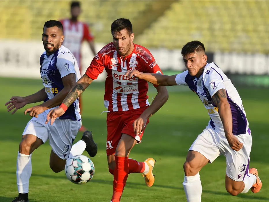 Cesar Daniel Meza Colli, Valentin Buhacianu si Costinel Andrei Tofan in meciul de fotbal dintre FC Arges si UTA Arad, contand pentru Liga 1 Casa Pariurilor, desfasurat fara spectatori pe Stadionul Nicolae Dobrin din Pitesti, vineri 11 septembrie 2020. © FOTO:Razvan Pasarica/SPORT PICTURES