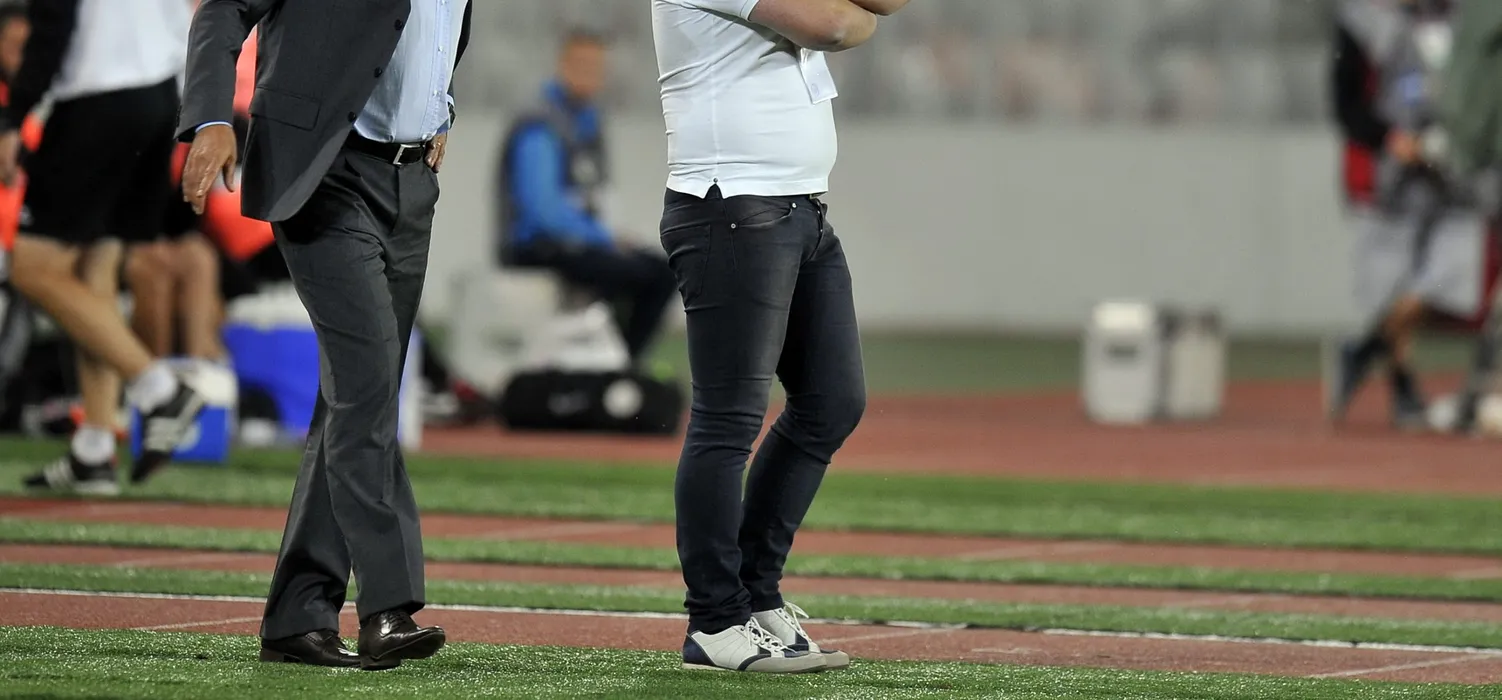 Presedintele clubului CSMS Iasi, Florin Prunea, si antrenorul Ionut Chirila urmaresc meciul cu Universitatea Cluj, din etapa a VI-a a Ligii I, disputat in Cluj-Napoca, luni, 1 septembrie 2014. DAN TAUTAN / MEDIAFAX FOTO