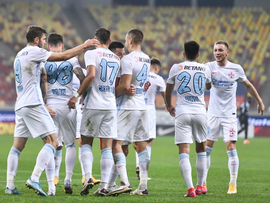 Fotbalistii stelisti Sergiu Florin Bus si Ionut Constantin Pantiru se bucura dupa un gol marcat in meciul de fotbal dintre FCSB si AFC Hermannstadt, contand pentru Liga 1 Casa Pariurilor, desfasurat fara spectatori pe Arena Nationala din Bucuresti, luni 26 octombrie 2020. © FOTO:Razvan Pasarica/SPORT PICTURES