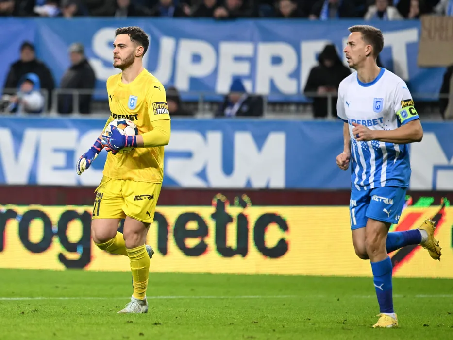 Iulian Laurentiu Popescu reacționează alături de Nicusor Silviu Bancu in meciul de fotbal dintre Universitatea Craiova si FCSB, contand pentru Superliga Superbet, desfasurat pe Stadionul Ion Oblemenco din Craiova, duminica 15 februarie 2026. © FOTO:Razvan Pasarica/SPORT PICTURES