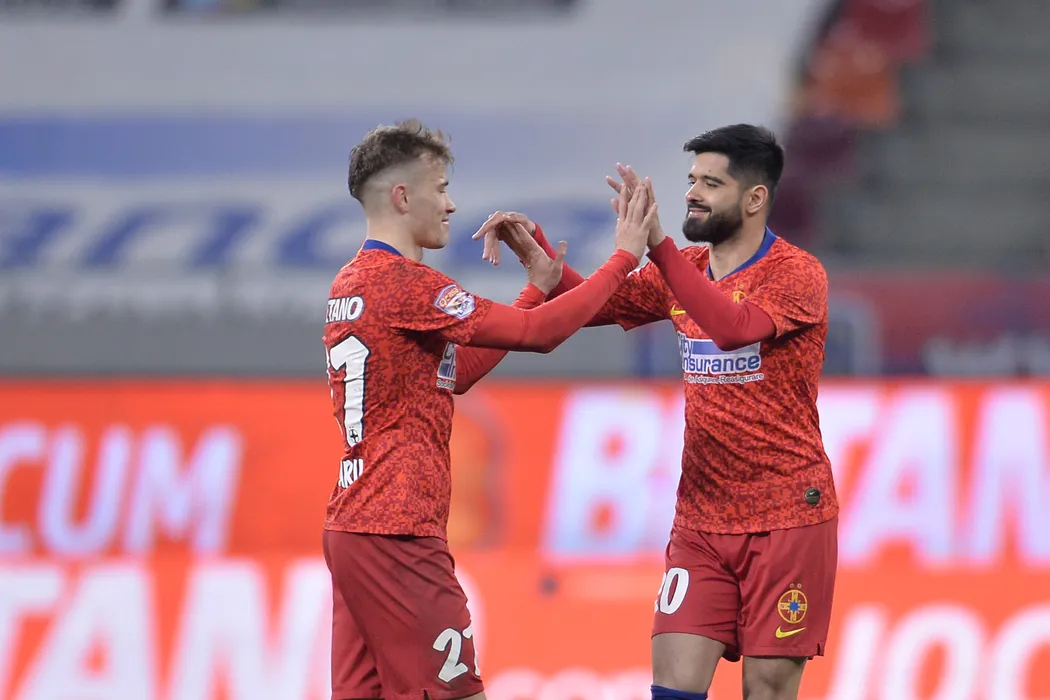 Echipele FCSB (echipament rosu) si CFR Cluj s-au intalnit intr-o partida disputata in etapa 28 din Liga 1 la fotbal, vineri 19 martie 2021, pe Arena Nationala din Bucuresti. ALEXANDRU DOBRE / MEDIAFAX FOTO
