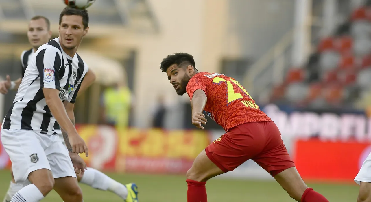 Ljubjan Crepulja si Ionut Vina in meciul de fotbal dintre Astra Giurgiu si FCSB, contand pentru play-off-ul Ligii 1 Casa Pariurilor, disputat fara spectatori pe Stadionul Marin Anastasovici din Giurgiu, luni 29 iunie 2020. © FOTO:Razvan Pasarica/SPORT PICTURES