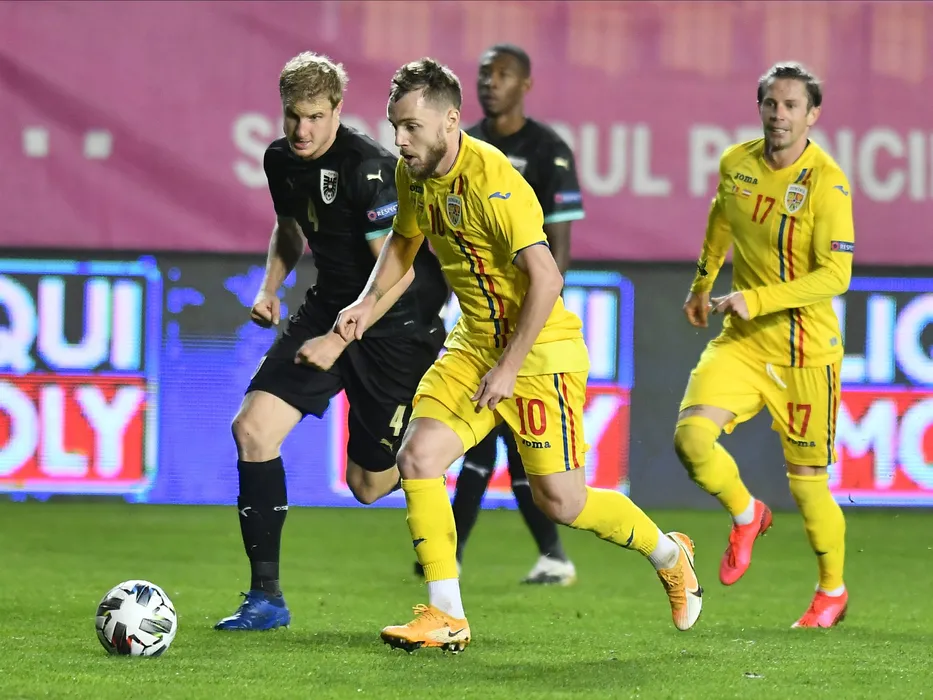 Martin Hinteregger si Alexandru Maxim in meciul de fotbal dintre Romania si Austria, contand pentru Liga Natiunilor, desfasurat fara spectatori pe Stadionul Ilie Oana din Ploiesti, miercuri 14 octombrie 2020. © FOTO:Razvan Pasarica/SPORT PICTURES