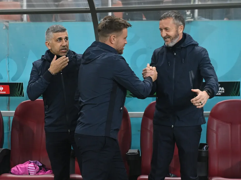 Marius Ianuli, Mihai Pintilii si Mihai Stoica la startul meciului de fotbal dintre FCSB si West Ham United, din cadrul grupelor UEFA Europa Conference League, desfasurat pe Arena Nationala din Bucuresti, joi 3 noiembrie 2022. © FOTO:Razvan Pasarica/SPORT PICTURES