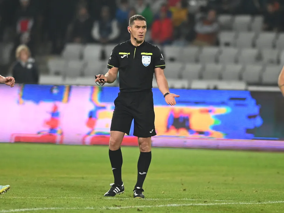 Arbitrul central Istvan Kovacs reactioneaza in meciul de fotbal dintre Universitatea Cluj si FCSB, contand pentru Superliga Superbet, desfasurat pe Cluj Arena din Cluj Napoca, duminica 31 octombrie 2022. © FOTO:Razvan Pasarica/SPORT PICTURES