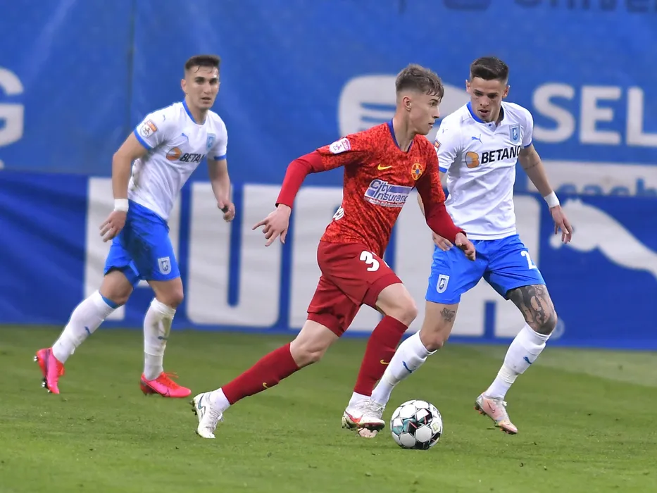Octavian George Popescu si Alexandru George Cimpanu in meciul de fotbal dintre Universitatea Craiova si FCSB, contand pentru Play-off-ul Ligii 1 Casa Pariurilor, desfasurat fara spectatori pe Stadionul Ion Oblemenco din Craiova, joi 29 aprilie 2021. © FOTO:Razvan Pasarica/SPORT PICTURES