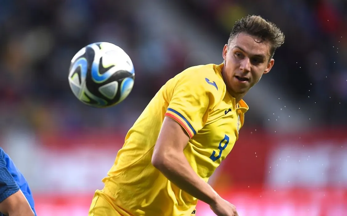 Louis Munteanu of Romania U21 in action during the UEFA European Under-21 Championship 2025 Qualifying round game between Romania U21 and Finland U21, at Municipal Stadium, in Sibiu, Romania, October 17, 2023. (Photo by Alex Nicodim/NurPhoto via Getty Images)