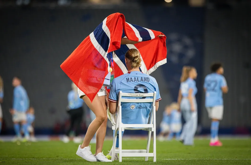 Istanbul, Turkey. 10th Jun 2023. Erling Haaland City feiert mit seiner Partnerin Isabel Haugseng Johansen Manchester City - Inter Mailand UEFA Champions League Final 10.06.2023 *** Istanbul, Turkey 10th Jun 2023 Erling Haaland City celebrates with his partner Isabel Haugseng Johansen Manchester City Inter Milan UEFA Champions League Final 10 06 2023,Image: 782709697, License: Rights-managed, Restrictions: , Model Release: no