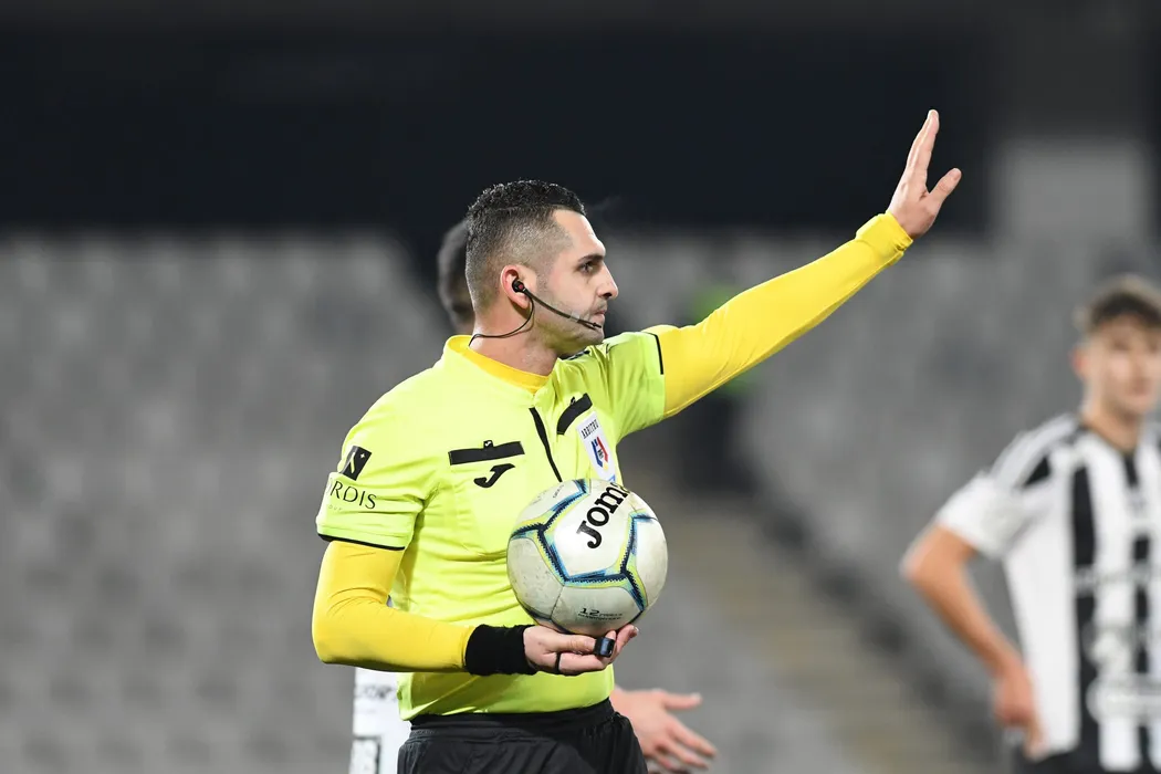 Arbitrul central Iulian Calin in meciul de fotbal dintre Universitatea Cluj si UTA Arad, contand pentru Cupa Romaniei, desfasurat fara spectatori pe Cluj Arena din Cluj Napoca, miercuri 10 februarie 2021. © FOTO:Flaviu Buboi/SPORT PICTURES
