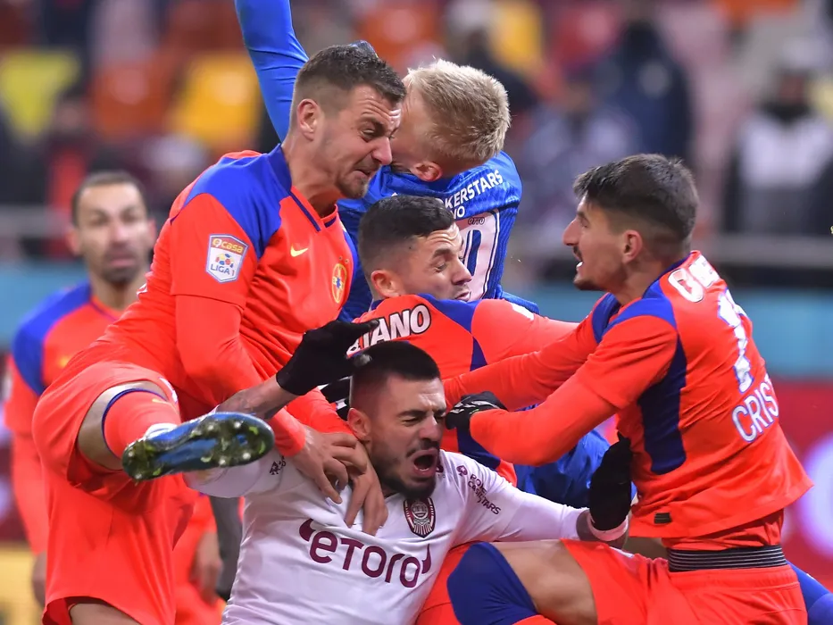 Andrei George Miron, Andonie Andrei Burca, Ioan Andrei Vasile Dumiter si Iulian Lucian Cristea in meciul de fotbal dintre FCSB si CFR Cluj, contand pentru Liga 1 Casa Pariurilor, desfasurat pe Arena Nationala din Bucuresti, duminica 23 ianuarie 2022. © FOTO:Razvan Pasarica/SPORT PICTURES
