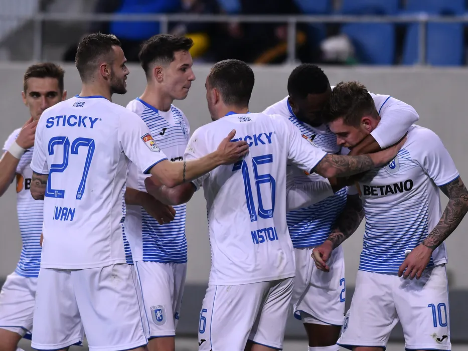 Bucurie a fotbalistilor Craiovei cu Ivan Martic, Luis Emanuel Nitu si Alexandru Cicaldau in meciul de fotbal dintre Universitatea Craiova si Gaz Metan Medias, contand pentru Liga 1 Casa Pariurilor, disputat pe Stadionul Ion Oblemenco din Craiova, duminica 1 martie 2020. © FOTO:Razvan Pasarica/SPORT PICTURES