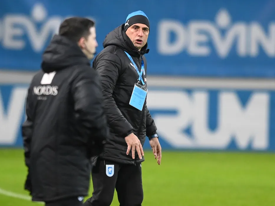 Bogdanov Ivaylo Petev reacționează în meciul de fotbal dintre Universitatea Craiova si Farul Constanta, contând pentru Superliga Superbet, desfășurat pe Stadionul Ion Oblemenco din Craiova, duminica 21 ianuarie 2024. © FOTO: Răzvan PĂSĂRICĂ/SPORT PICTURES