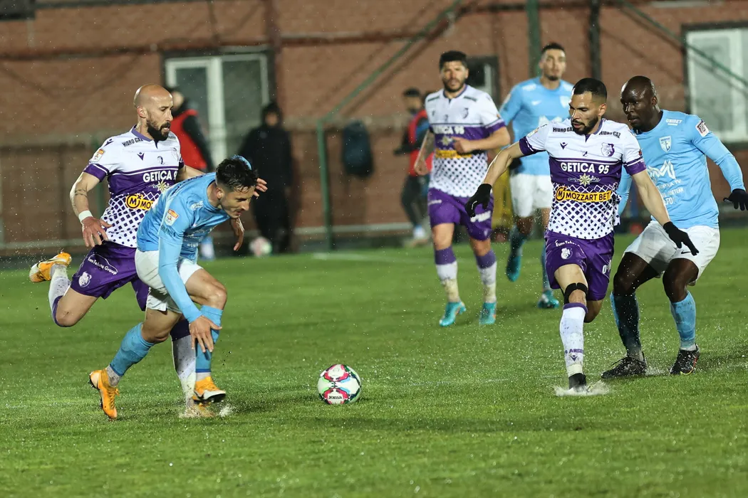 Iasmin Latovlevici, Ricardo Jose Veiga Varzim Miranda, Cesar Daniel Meza Colli si Ulrich Sidoine Meleke in meciul de fotbal dintre FC Voluntari si FC Arges, contand pentru Cupa Romaniei, desfasurat pe Stadionul Anghel Iordanescu din Voluntari, marti 19 aprilie 2022. © FOTO:Gheorghe Fluster/SPORT PICTURES