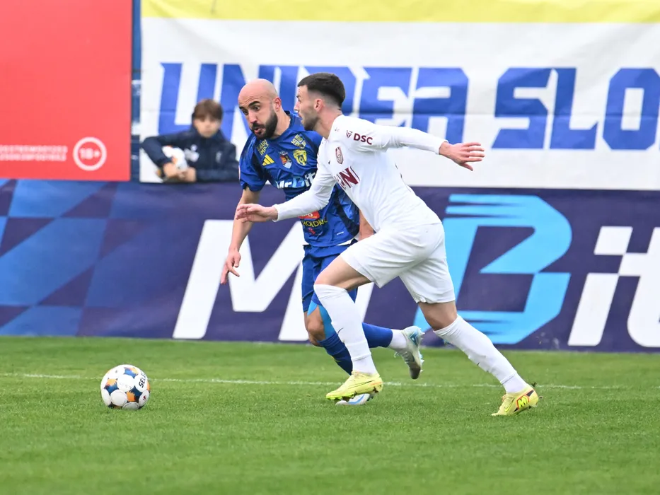 Daniel Marius Serbanica si Andrei Ioan Cordea in meciul dintre Unirea Slobozia si CFR Cluj, contand pentru Superliga Superbet, desfasurat pe Clinceni Arena din Clinceni, duminica 9 noiembrie 2025. © FOTO:Razvan Pasarica/SPORT PICTURES