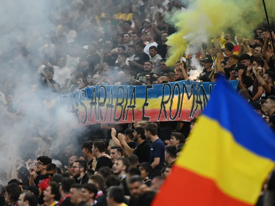 Baner cu mesajul :"Basarabia e Romania" afisat in peluza la meciul de fotbal dintre Romania si Kosovo, din cadrul preliminariilor Campionatului European 2024, desfasurat pe Arena Nationala, marti 12 septembrie 2023. © FOTO:Razvan Pasarica/SPORT PICTURES