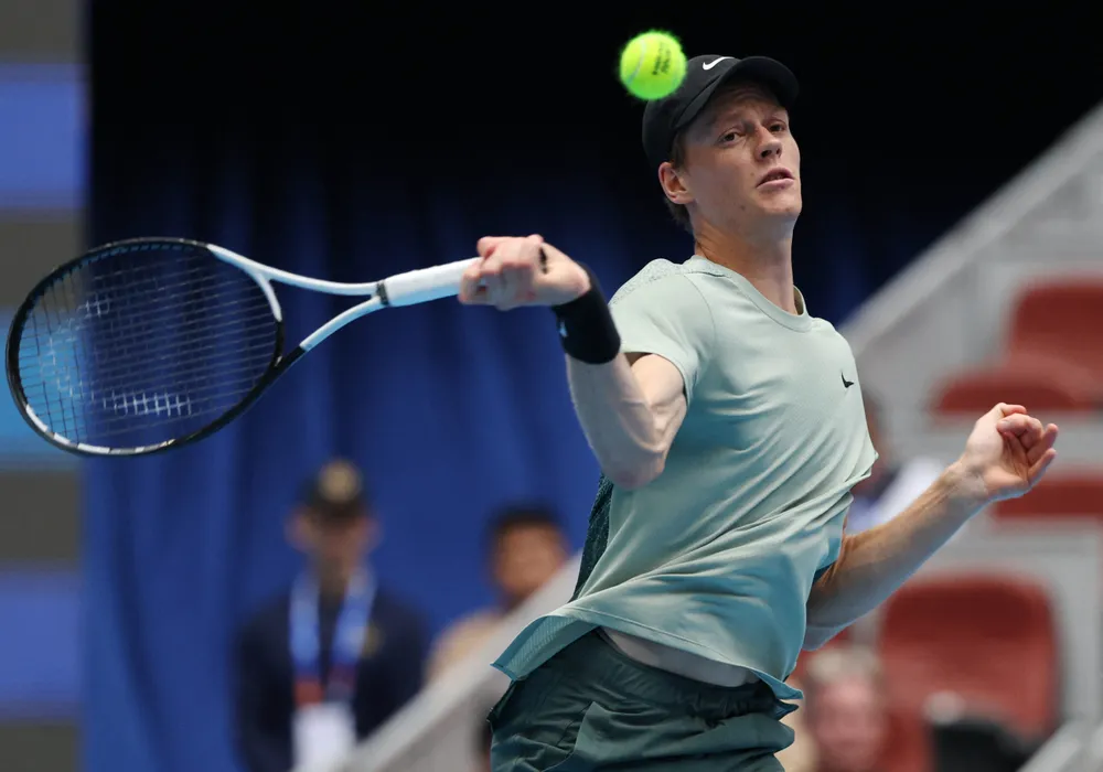 Jannik Sinner hits a return during the men's singles second round match between Jannik Sinner of Italy and Roman Safiullin of Russia at 2024 China Open tennis tournament in Beijing, capital of China, September 28, 2024. Photo byZhang Chenlin/Xinhua/ABACAPRESS.COM
