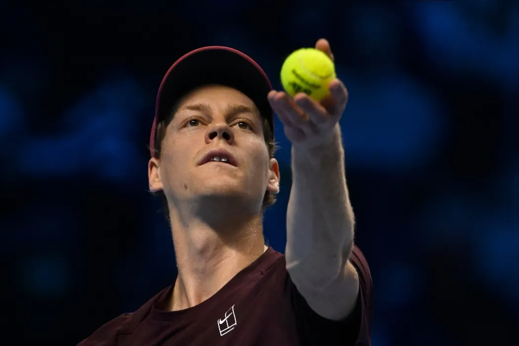Jannik Sinner of Italy plays a backhanda gainst Alex de Minaur of Australia during their Men's Single's Nitto ATP Semi Finals match during day seven of the Nitto ATP Finals at Inalpi Arena on November 15, 2025 in Turin, Italy.