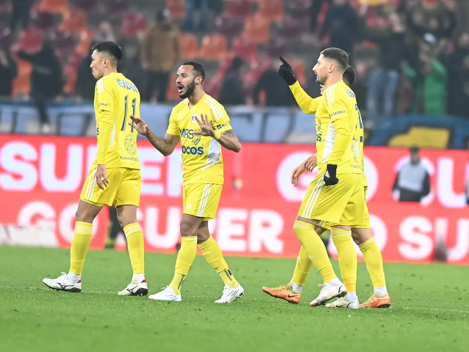 Bucurie a fotbalistilor rapidisti dupa un gol marcat cu Seto Takayuki, Jair Tavares Da Silva si Gheorghe Teodor Grozav in meciul de fotbal dintre Rapid Bucuresti si Petrolul Ploiesti, contand pentru Superliga Superbet, desfasurat pe Arena Nationala din Bucuresti, miercuri 14 decembrie 2022. © FOTO:Razvan Pasarica/SPORT PICTURES