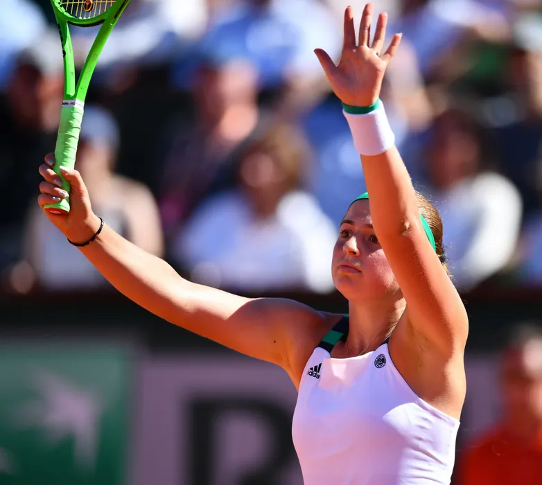 PARIS, FRANCE - JUNE 10: Jelena Ostapenko of Latvia gestures after winning her French Open Women's Final tennis match against Simona Halep (not seen) of Romania at Roland Garros stadium in Paris, France on June 10, 2017. Mustafa Yalcin / Anadolu Agency