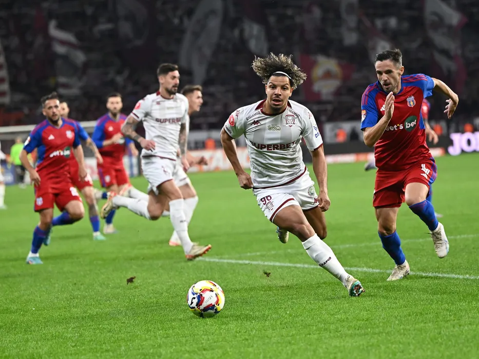 Jayson Jordan Julien Romain Papeau si Dean Beta in meciul de fotbal dintre CSA Steaua Bucuresti si Rapid Bucuresti, contand pentru Cupa Romaniei Betano, desfasurat pe Stadionul Steaua-Ghencea din Bucuresti, miercuri 1 noiembrie 2023. © FOTO:Razvan Pasarica/SPORT PICTURES