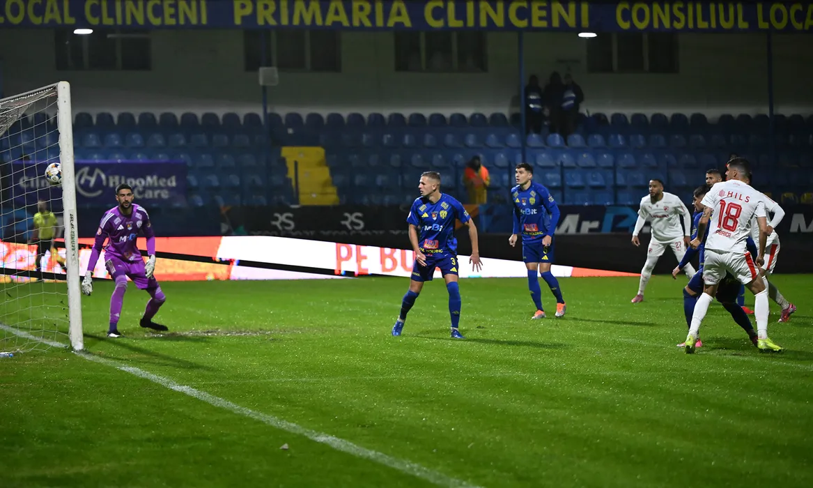 Stipe Perica marchează un gol în poarta lui Ion Cristian Gurau in meciul dintre Unirea Slobozia si Dinamo Bucuresti, contand pentru Superliga Superbet, desfasurat pe Clinceni Arena din Clinceni, vineri 3 octombrie 2025. © FOTO:Razvan Pasarica/SPORT PICTURES