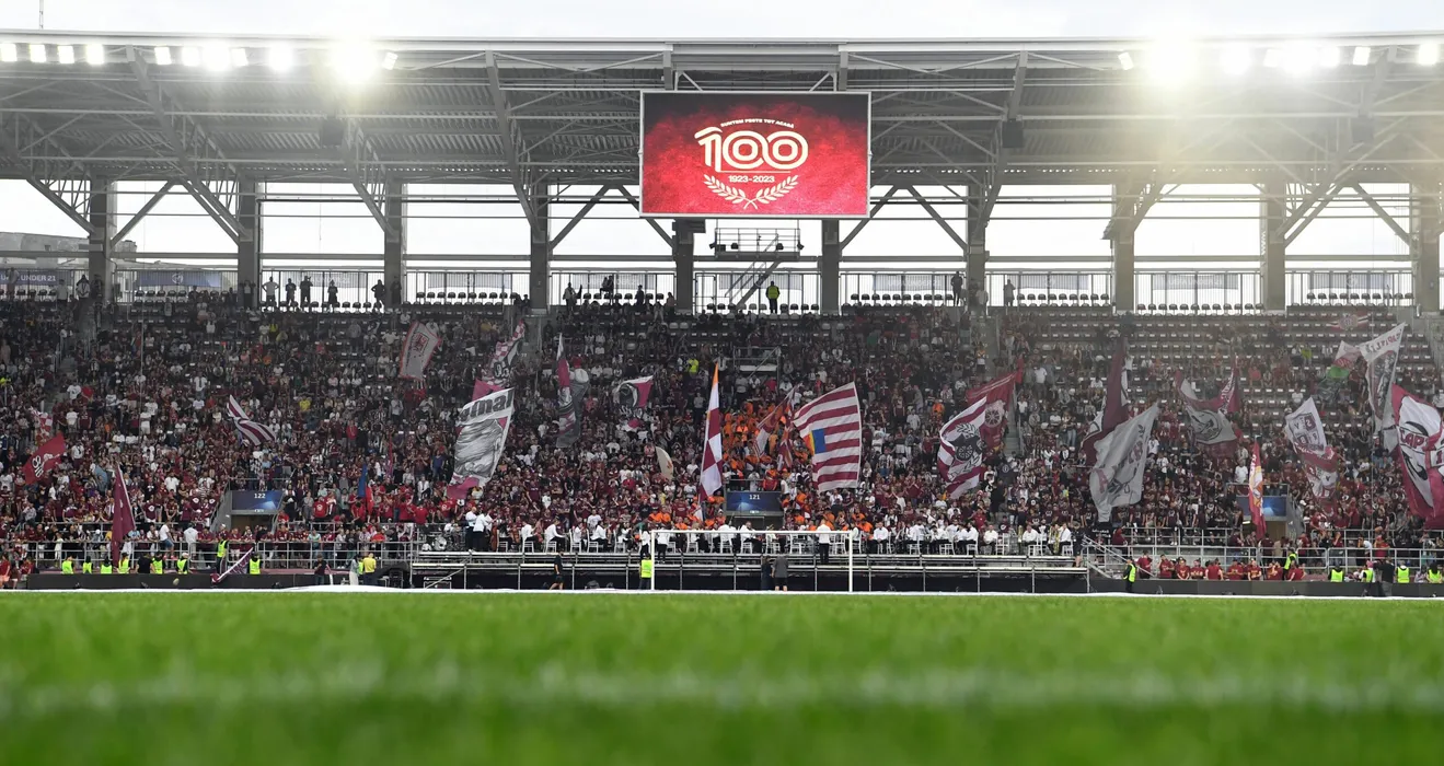 Suporterii participa la sarbatorirea a 100 de ani ai clubului Rapid Bucuresti din Bucuresti, eveniment desfasurat pe Superbet Giulesti Arena din Bucuresti, duminica 25 iunie 2023. © FOTO:Simion Mechno/SPORT PICTURES