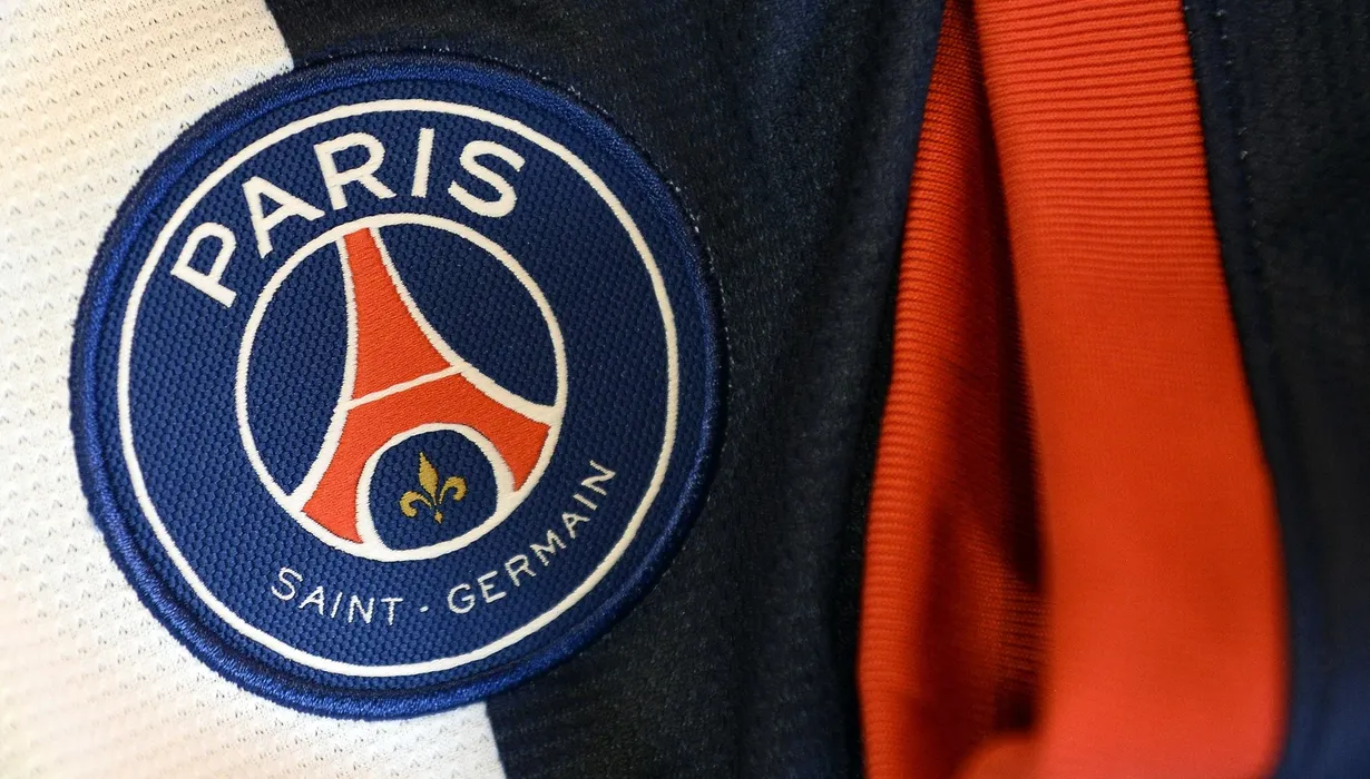 A photo taken on September 11, 2014 in Paris, shows a partial view of the new jersey of the Paris Saint Germain (PSG) football team.,Image: 205305797, License: Rights-managed, Restrictions: , Model Release: no
