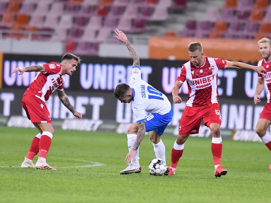 Aleix Garcia Serrano, Alexandru Cicaldau si Janusz Krzysztof Gol in meciul de fotbal dintre Dinamo Bucuresti si Universitatea Craiova, contand pentru Liga 1 Casa Pariurilor, desfasurat fara spectatori pe Arena Nationala din Bucuresti, duminica 18 octombrie 2020. © FOTO:Razvan Pasarica/SPORT PICTURES