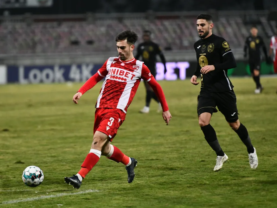 Andrei Radu si Ricardo Jorge Oliveira Valente in meciul de fotbal dintre Dinamo Bucuresti si Gaz Metan Medias, contand pentru Liga 1 Casa Pariurilor, desfasurat fara spectatori pe Stadionul Dinamo din Bucuresti, miercuri 27 ianuarie 2021. © FOTO:Razvan Pasarica/SPORT PICTURES