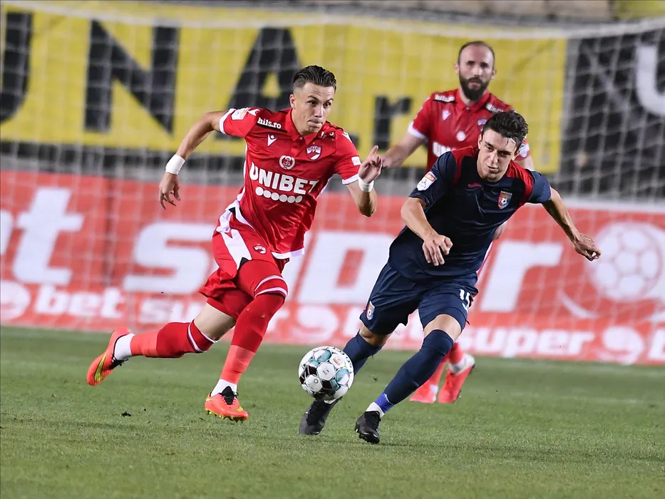Andreias Mircea Mihaiu si Tomas Diaz Grassano in meciul de fotbal dintre Chindia Targoviste si Dinamo Bucuresti, contand pentru Liga 1 Casa Pariurilor, desfasurat fara spectatori pe Stadionul Ilie Oana din Ploiesti, luni 31 august 2020. © FOTO:Razvan Pasarica/SPORT PICTURES