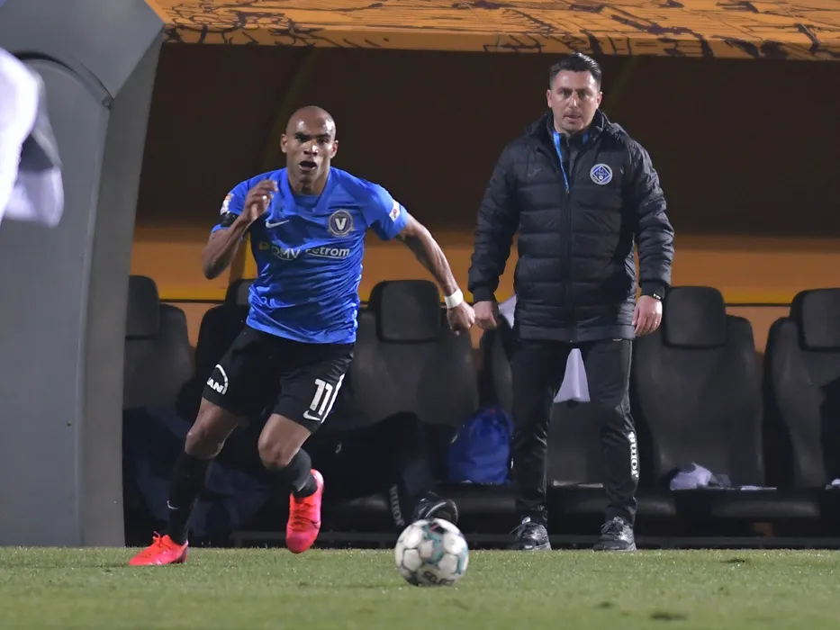 Santos Oliveira Joalisson si Ilie Poenaru in meciul de fotbal dintre FC Viitorul Constanta si Academica Clinceni, din cadrul Ligii 1 Casa Pariurilor, desfasurat fara spectatori pe Stadionul Central al Academiei Gheorghe Hagi din Ovidiu, vineri 5 martie 2021. © FOTO:Razvan Pasarica/SPORT PICTURES