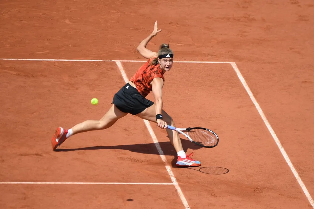 Karolina Muchova of Czech Republic in action during women singles semi-final match against Aryna Sabalenka of Belarus at 2023 Roland Garros in Paris, France