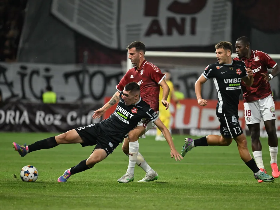 Lars Kramer, Marko Gjorgjievski, Constantin Dragos Albu si Abdul Kader Keita in meciul de fotbal dintre Rapid Bucuresti si FC Hermannstadt, din cadrul Superligii Superbet, desfasurat pe Superbet Arena-Giulesti din Bucuresti, duminica 21 septembrie 2025. © FOTO:Razvan Pasarica/SPORT PICTURES