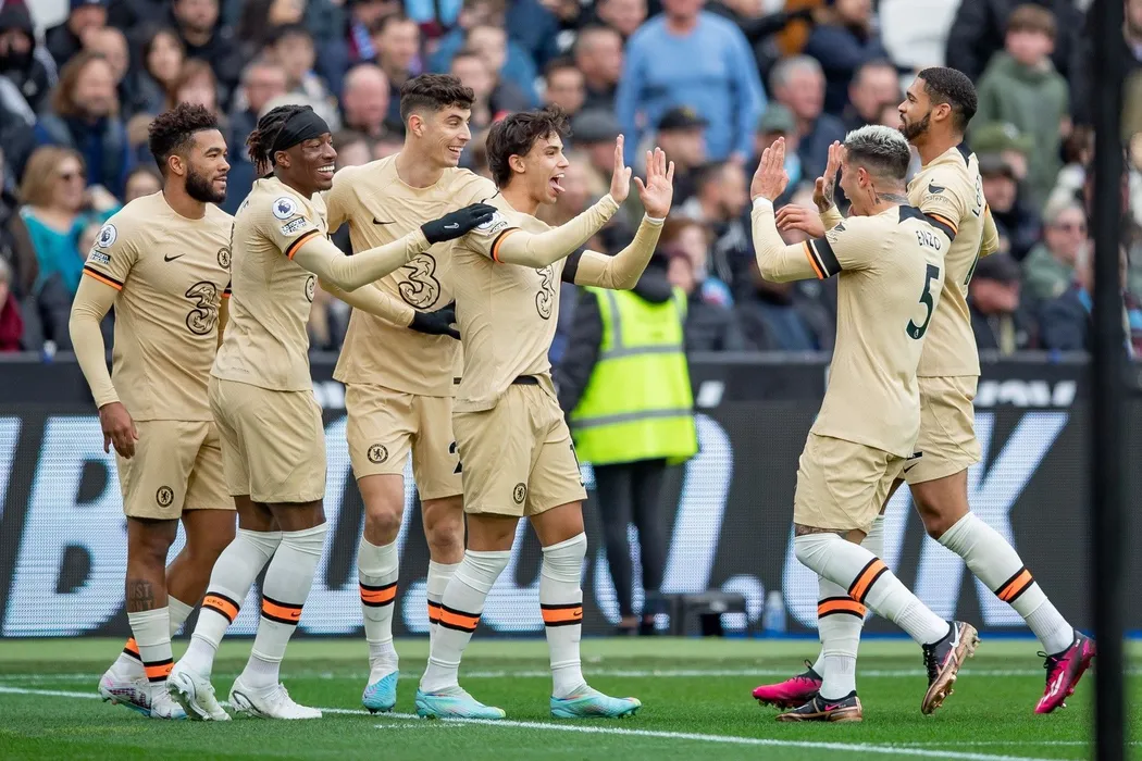 Chelesea FC players celebrate after Joao Felix of Chelsea FC opened the scoring