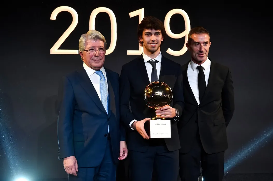 Nella foto: Enrique Cerezo, Joao Felix, Andrea Berta