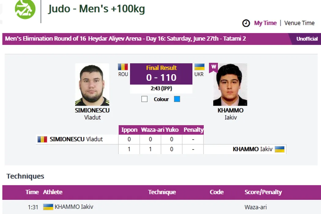 Jocurile Europene de la Baku | Ziua a 15-a. România a încheiat rapid conturile. „Greii” de la judo, Simionescu și Natea, învinși prin Ippon în optimi. Eliminări drastice la înot, în serii, pentru cei trei „tricolori”