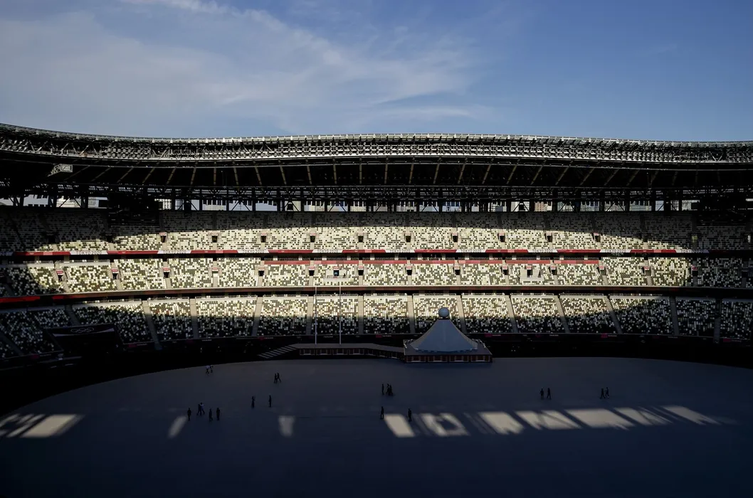 An empty New Olympic Stadium Meiji-Jingu Park ahead of the opening ceremony of the Olympic Games. The largest sporting event in the world has officially started.