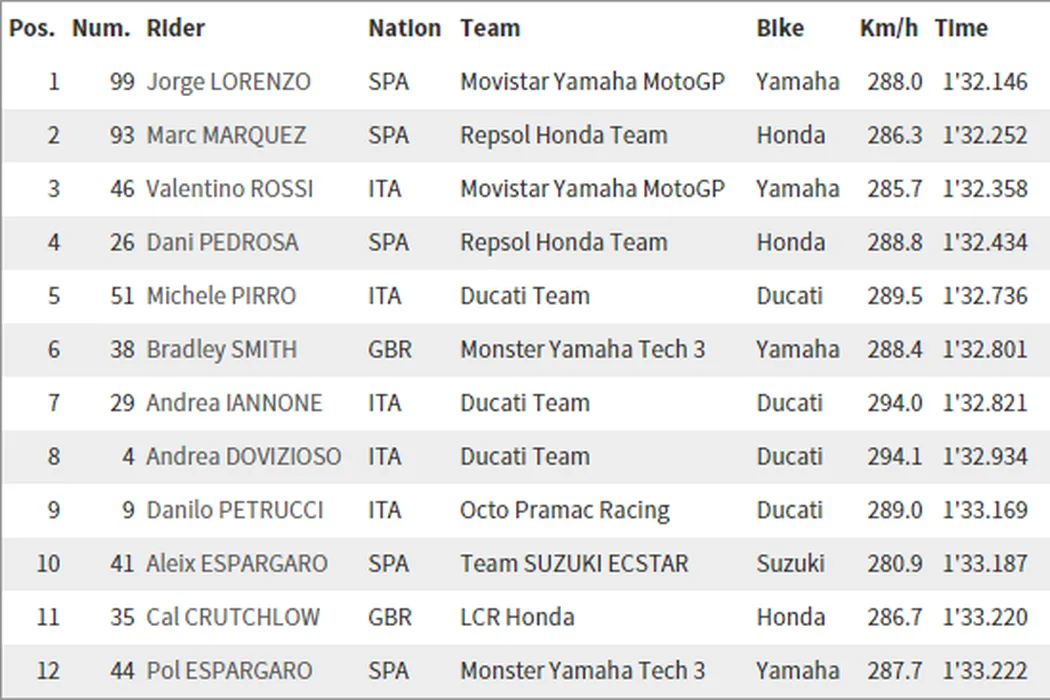 Jorge Lorenzo pleacă din pole position la Misano. Marquez și Rossi, pe 2 și 3 în grila cursei de duminică, ora 15:00