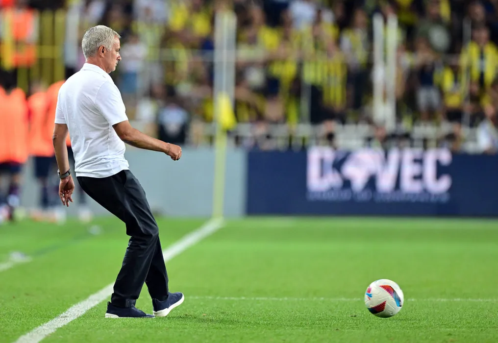 ISTANBUL, TURKIYE - AUGUST 13: Head coach Jose Mourinho of Fenerbahce restarts play by tossing the ball back onto the field from the touchline during the UEFA Champions League third qualifying round second-leg match between Fenerbahce and Lille at Ulker Stadium in Istanbul, Turkiye on August 13, 2024. Ali Atmaca / Anadolu/ABACAPRESS.COM