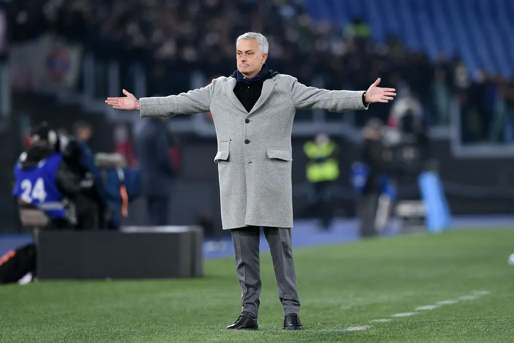Jose' Mourinho manager of AS Roma gestures during the Serie A match between AS Roma and FC Juventus at Stadio Olimpico, Rome, Italy on 9 January 2022.