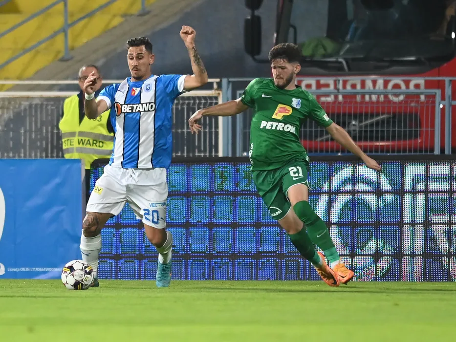 Jovan Markovic si Dan Sirbu in meciul de fotbal dintre Universitatea Craiova si Farul Constanta, contand pentru Superliga Superbet, desfasurat pe Stadionul Municipal din Drobeta Turnu Severin, luni 5 septembrie 2022. © FOTO:Razvan Pasarica/SPORT PICTURES
